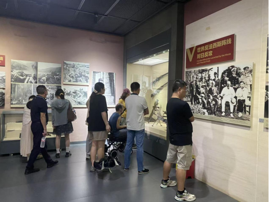 行至“湖南抗战”专题展区,青年党员朱宇伦凝视锈迹斑斑的刺刀与补丁累累的军装,动容感慨:“难以想象先辈们如何以如此匮乏的物资,凭借钢铁意志战胜强敌。”当了解到湖南作为抗战焦土,经历长沙会战、常德保卫战、衡阳鏖兵等惨烈战役,歼敌十余万的光辉战绩时,全体同志无不为三湘大地铸就的抗战精神深深震撼。